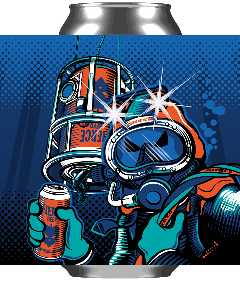 Illustration for Fierce – limited edition craft beer can for Greco commercial dive gear.